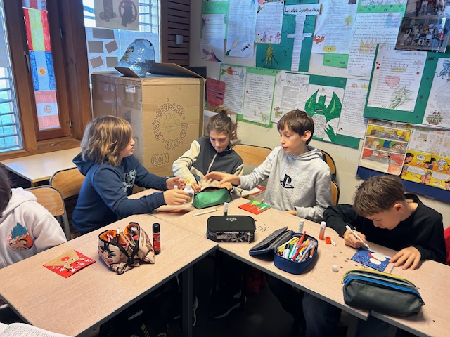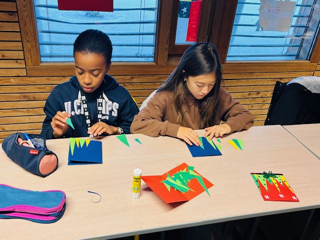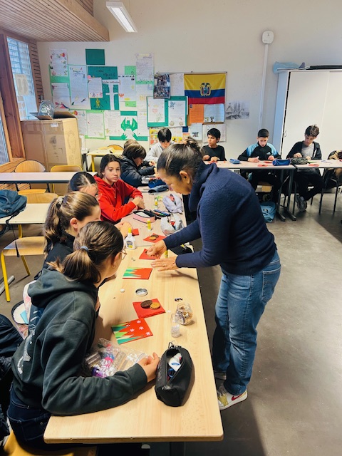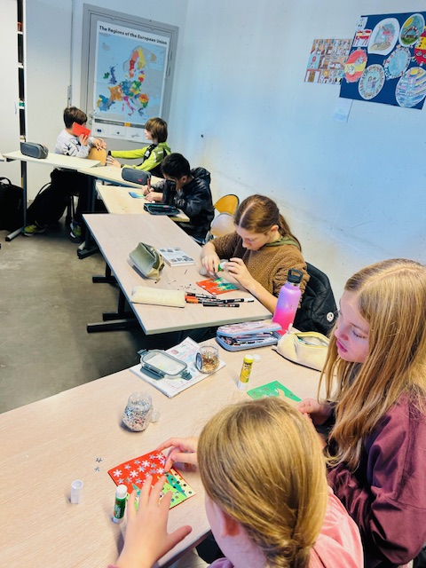 6eme1, 6eme2, S1, 5eme2 et S2 ont pu réaliser une carte de Noël pour leurs familles et participer au marché de Noël.