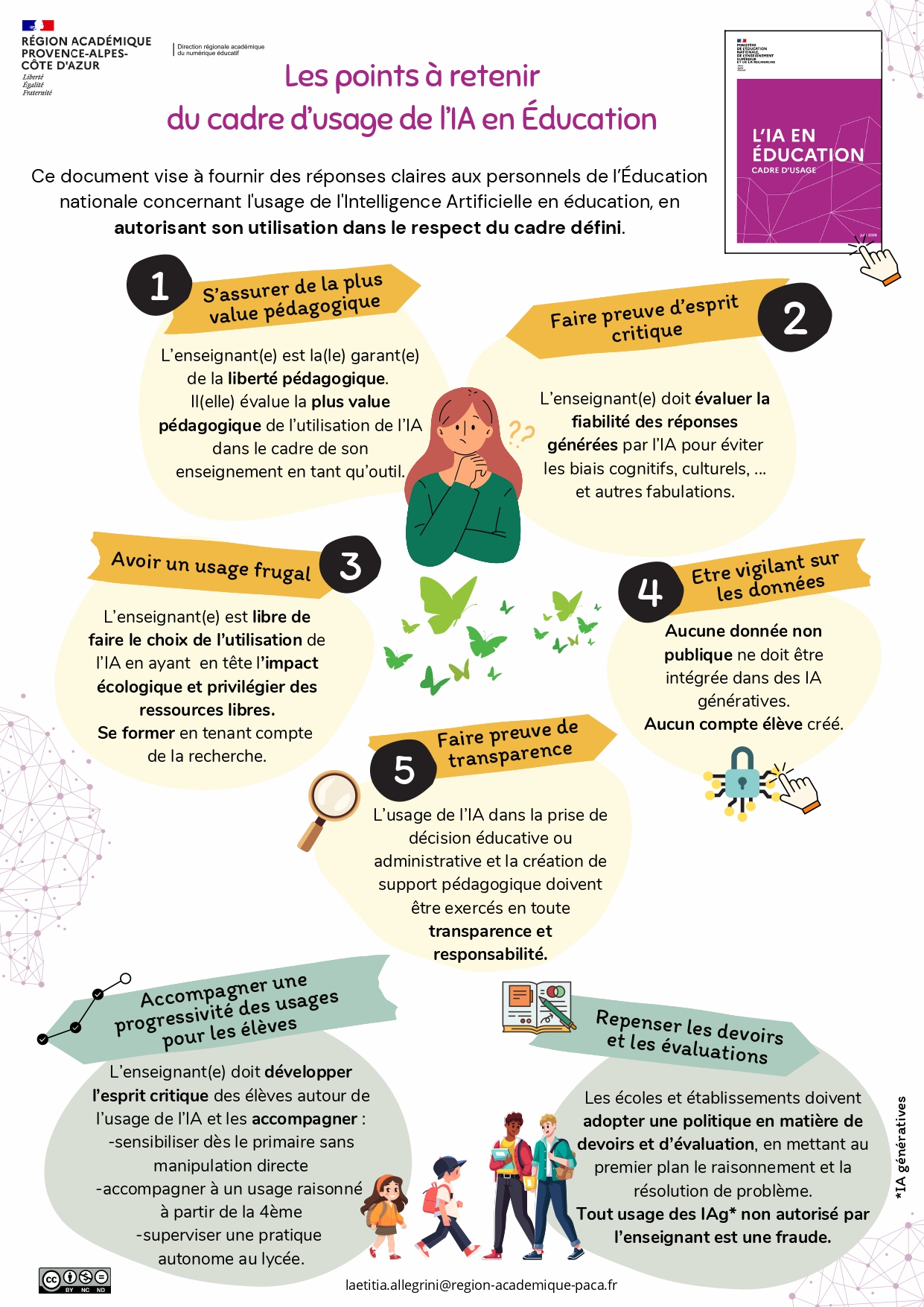 La DRANE PACA a souhaité créer un document de synthèse concernant l’utilisation de l’IA dans le cadre scolaire : Le kit IA. Cliquez sur l’image pour ouvrir le document en mode PDF, ou cliquez ICI si vous souhaitez en découvrir une synthèse audio sous forme de podcast, réalisé par une IA.