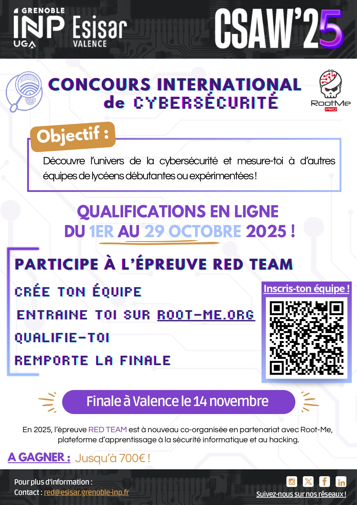 Cette année plusieurs élèves de l’école prennent part au concours de cybersécurité CSAW Red Team 2025.