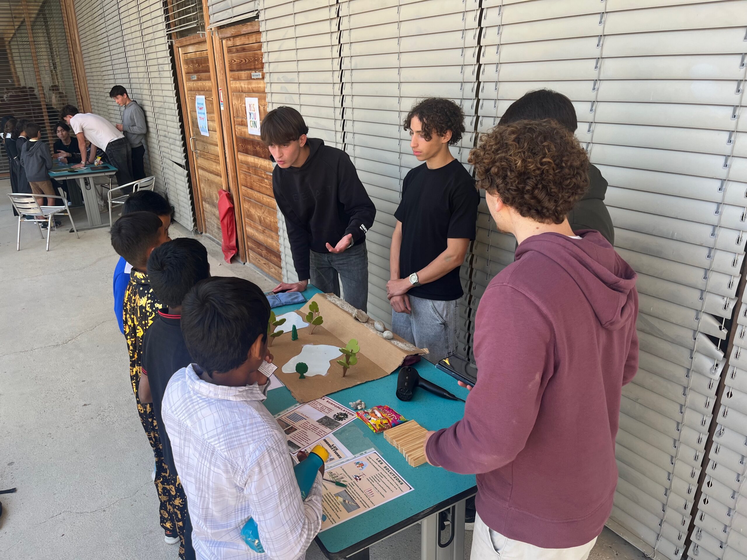 À la veille des vacances de la Toussaint, les élèves de Terminale ont accueilli des élèves de CM1 et de CM2 pour leur présenter des ateliers de sensibilisation à l’impact des activités humaines sur le climat.